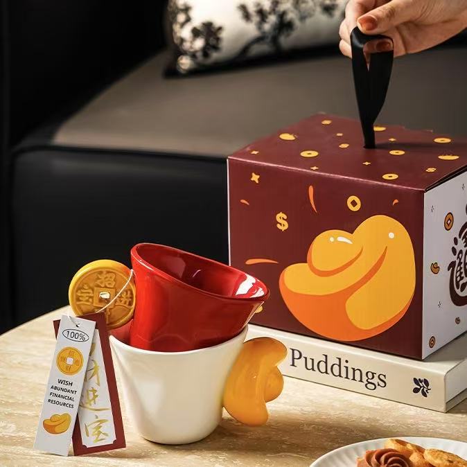 白色杯身 + 元宝把手:象征财富盈门,福气满满。